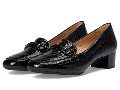 Spring Step Enda - Women's Shoes : Black Croco Patent : Introducing the Spring Step Enda Croco-Embossed Leather Loafer Pumps, your new go-to for polished perfection. Crafted with a glossy croco-patterned leather upper, lining, and insole, these shoes radiate timeless style with a modern twist. The refined loafer silhouette is elevated by a chic metallic bit detail, making it the perfect partner for tailored workwear or sleek evening ensembles. Designed with your comfort in mind, the low block heel and supportive cushioned insole provide lasting ease and superior arch support, so you can stay confident and comfortable from day to night. The flexible TPU outsole ensures durability and smooth movement, while the pull-on design keeps them effortlessly convenient. ; Imported. Measurements: ; Heel Height: 1 1 2 in ; Weight: 1 lb 3.2 oz ; Product measurements were taken using size EU 40 (US Women's 9), width M. Please note that measurements may vary by size. | Spring Step Enda Women's Shoes Black Croco Patent : EU 37 (US Women's 6.5-7) M, Leather