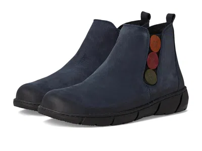 Spring Step Katana - Women's Boots : Navy : Experience the ultimate in style and comfort with the ultra-comfortable bootie, seamlessly blending fashion and coziness for everyday wear. Accented with circular leather pieces that cover the elasticized gore, this Spring Step Katana bootie provides ease with every step. Crafted from premium nubuck leather enhanced with a rich burnished finish that acquires a natural patina over time. Featuring a convenient inside zipper, slipping into these booties is easy, ensuring hassle-free and quick wear. The cushioned insole with arch support can be removed, making it easy to customize your comfort level or replace it with your own orthotics. The rugged, rubber sole provides excellent traction and support so you can walk with confidence. ; Fabric lining, and textile insole. ; Round toe design, back pull tab, and ankle-high silhouette. ; Slip-on closure. ; Imported. Measurements: ; Heel Height: 1 1 4 in ; Weight: 12 oz ; Product measurements were taken using size EU 40 (US Women's 9), width M. Please note that measurements may vary by size. | Spring Step Katana Women's Boots Navy : EU 40 (US Women's 9) M, Leather/Rubber/Textile