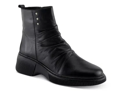 Brushed studs and delicate scrunching add modern elements to a leather bootie set on a modest platform and integrated block heel. 2 1/4" heel 5 1/2" shaft Side zip closure Removable, cushioned insole Leather upper/textile lining/synthetic sole Made in Turkey