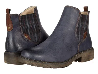 Spring Step Nonia - Women's Shoes : Navy : The Spring Step Nonia, a classic Chelsea boot constructed using faux leather uppers, has been modernized with plaid-printed elastic gore panels for a fun, cool weather-inspired touch. ; Pull-on bootie with rear pull loop for entry assistance. ; Closed rounded toe and low heel. ; Textile lining and insole. ; Synthetic sole. ; Imported. Measurements: ; Heel Height: 1 1 2 in ; Weight: 14 oz ; Shaft: 5 in ; Product measurements were taken using size EU 39 (US Women's 8.5), width M. Please note that measurements may vary by size. | Spring Step Nonia Women's Shoes Navy : EU 37 (US Women's 6.5-7) M, Synthetic
