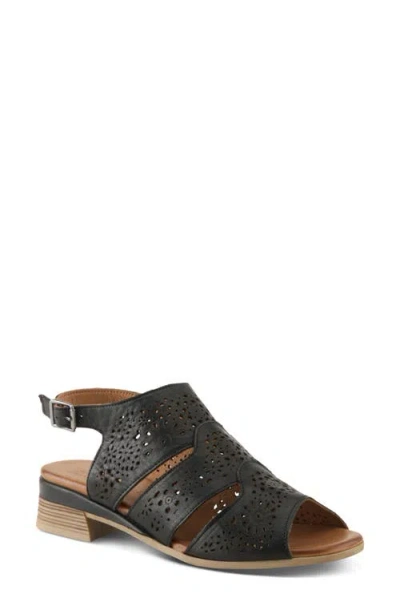 Floral laser-cut straps lend breathability and ornate detail to this breezy leather sandal set on a soft footbed and flexible sole for daylong comfort. 1 1/2" heel Adjustable ankle strap with buckle closure Cushioned footbed Leather upper and lining/synthetic sole Made in Turkey