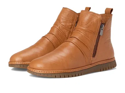 Spring Step Rosado - Women's Boots : Camel : Step into comfort in our luxurious Spring Step Rosado bootie featuring dual functional zippers and a ruching leather upper made from soft leather. These ankle-high boots provide unmatched comfort and support with a flexible rubber outsole, making them the perfect choice for all-day wear. Crafted from a textile lining with rusching detail to add sophistication to your look, these almond toe boots enhanced comfort and support provided by a soft leather removable insole. The ankle pull tab is designed for easy donning and doffing. ; Arch support. ; Imported. Measurements: ; Heel Height: 1 in ; Weight: 12.2 oz ; Circumference: 4 1 2 in ; Product measurements were taken using size EU 40 (US Women's 9), width M. Please note that measurements may vary by size. | Spring Step Rosado Women's Boots Camel : EU 39 (US Women's 8.5) M, Leather