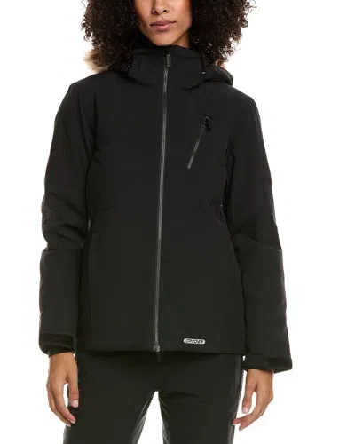 Elevate your performance on the slopes with the Spyder Skyline Jacket. This innovative ski wear from the renowned brand Spyder features a sleek black design with a detachable hood embellished with faux fur trim. The jacket boasts three front zippered pockets, a zippered sleeve pocket, velcro straps at the cuffs, and contrast inner cuffs with thumbholes for added functionality. An inner drawcord at the hem and an interior snowskirt provide additional protection against the elements. Measuring approximately 26 inches from shoulder to hem, this jacket is designed for a flattering fit. The model is 5'11 and is wearing a size small, but measurements may vary slightly by size. The zipper front closure and medium-weight construction make this jacket versatile for various weather conditions. Made from a blend of 55% polyester and 45% recycled polyester, the Skyline Jacket features a 100% nylon lining, 100% polyester mesh, 100% polyester insulation, and faux fur trim crafted from 63% acrylic, 20% polyester, and 17% modacrylic. This jacket is machine washable for easy care and is imported for quality craftsmanship. Elevate your ski performance with the Spyder Skyline Jacket.