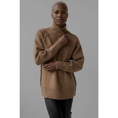Slip into this relaxed-shaped sweater knitted in a heavier, soft baby alpaca yarn for extra warmth. It features a stand-up wrap collar designed to keep the cold drafts out, and outside seams all around for additional detail. Our signature ribbed trims create a simple, modern fit. 100% Baby Alpaca Midweight fabric Dry Clean Only