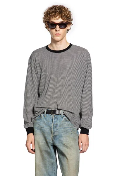 SSSTEIN Fine Wool Oversized Long Sleeve Tee Stripe In Gray