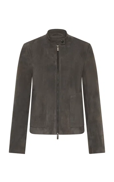 Mandarin collar; front zip closure; slim silhouette; front patch pockets; panel detail; back vent; lined