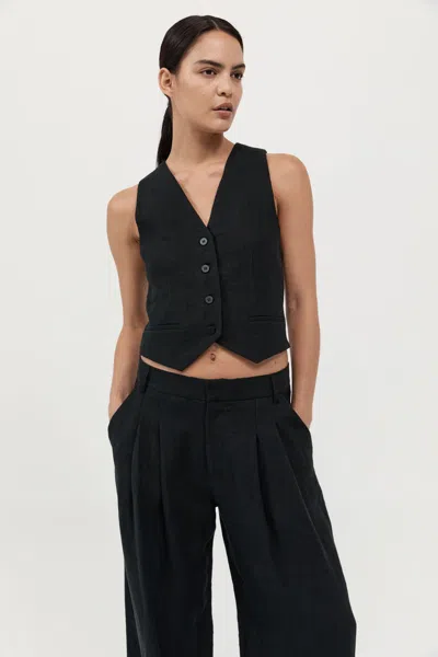 ST AGNI Tailored Linen Vest In Black