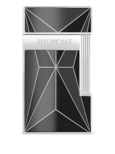 black polished finish silver-tone detailing geometric design compact size flip top lid