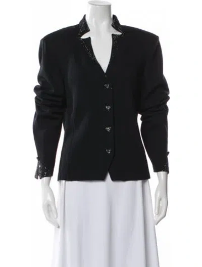 St. John Evening Blazer Blue Crystal Embellishments & Stand Collar Button Closure Fit: Jackets by St. John typically fit true to size. | St. John Evening Blazer in Blue, Women's US 14 | XL