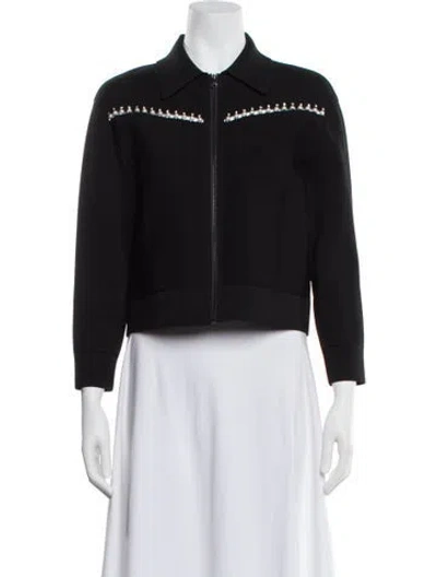 St. John Bomber Jacket Black Crystal Embellishments & Pointed Collar Zip Closure Designer Fit: Jackets by St. John typically fit true to size. | St. John Bomber Jacket w/ Tags in Black, Women's S