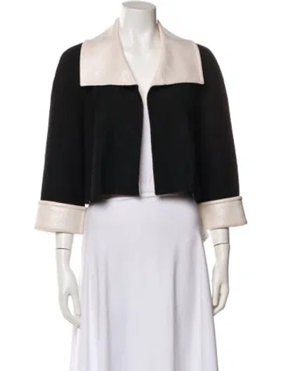St. John Caviar Wool Jacket Black & Neutrals Colorblock Pattern Shawl Collar Open Front Fit: Jackets by St. John Caviar typically fit true to size. | St. John Caviar Wool Colorblock Pattern Jacket in Black/Neutrals, Women's US 8 | M