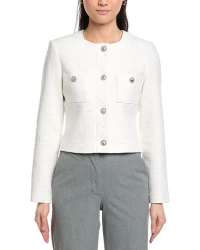 About The Brand: Luxurious Knitwear That's Effortlessly Elegant. Collarless Boxy Jacket In White/Silver Multi With Metallic Threading, Shoulder Padding, Chest Pockets And Embellished Buttons Approximately 20In From Shoulder To Hem Model Is 5'10 And Is Wearing A Size 2. Measurements May Vary Slightly By Size. Button Front 41% Cotton, 34% Acrylic, 23% Polyester, 1% Metallic Polyester, 1% Other Lining: 62% Acetate, 38% Polyester Dry Clean Only Imported