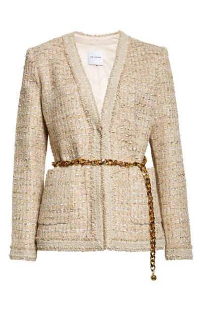 ST JOHN St. John Collection Tweed Jacket With Chain Belt In Neutral