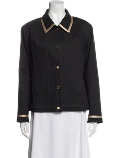 St. John Sport Denim Jacket Grey Pointed Collar Slit Pockets & Button Closure Designer Fit: Jackets by St. John Sport are typically designed for a slim fit. | St. John Sport Denim Jacket in Grey, Women's XXL