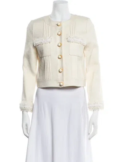 St. John Denim Jacket Neutrals Collarless Slit Pockets & Button Closure Designer Fit: Jackets by St. John typically fit true to size. | St. John Denim Jacket w/ Tags in Neutrals, Women's US 2 | XS