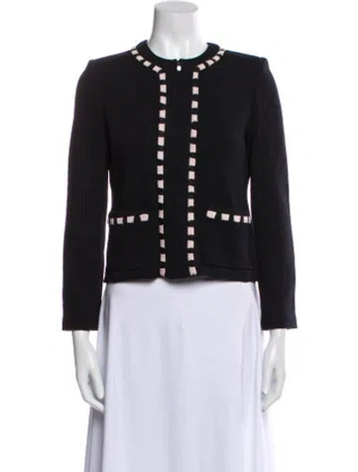 St. John Collection Evening Jacket Black Leather Trim Embellishment & Collarless Slit Pockets & Zip Closure Fit: Jackets by St. John typically fit true to size. | St. John Collection Evening Jacket in Black, Women's US 2 | XS