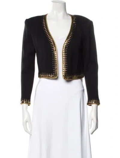 St. John Evening Evening Jacket Black Beaded Accents & Collarless Snap Closure Size not listed, estimated from measurements. Fit: Jackets by St. John typically fit true to size. | St. John Evening Evening Jacket in Black, Women's US 8 | M
