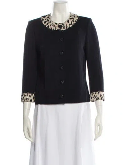 St. John Evening Evening Jacket Blue Studded & Crystal Accents Collarless Slit Pockets & Button Closure Fit: Jackets by St. John typically fit true to size. | St. John Evening Evening Jacket in Blue, Women's US 4 | S