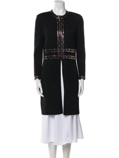 St. John Evening Jacket Black Beaded & Sequin Accents Collarless Slit Pockets & Zip Closure Fit: Jackets by St. John typically fit true to size. | St. John Evening Jacket in Black, Women's US 4 | S
