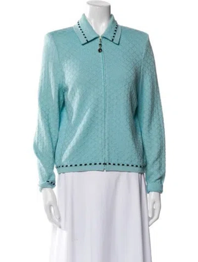 St. John Jacket Blue Pointed Collar Zip Closure Designer Fit: Jackets by St. John typically fit true to size. | St. John Jacket in Blue, Women's US 8 | M