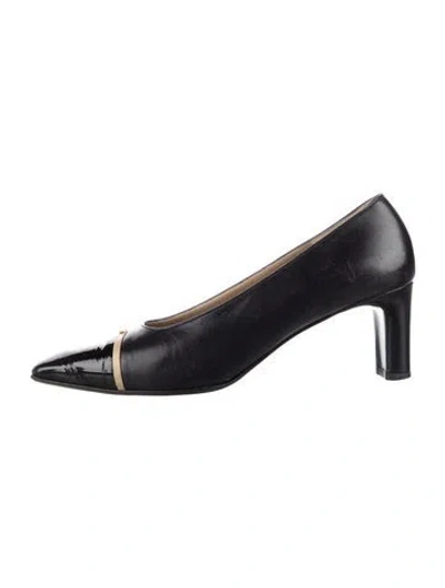 St. John Leather Pumps Black & Green Square-Toes Unfortunately, due to restrictions, this item may not be eligible for shipping in all areas. | St. John Leather Pumps in Black/Green, Women's 8