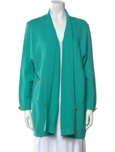 St. John Cardigan Blue Long Sleeve with Open Front Designer Fit: Sweaters by St. John typically fit true to size. | St. John Open Front Sweater in Blue, Women's L