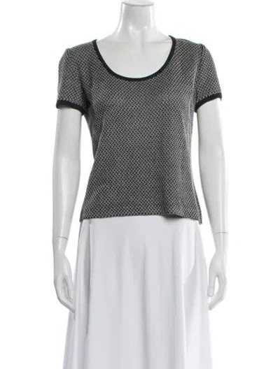 St. John T-Shirt Blue Patterned Short Sleeve with Crew Neck Fit: Tops by St. John typically fit true to size. | St. John Patterned Crew Neck T-Shirt in Blue, Women's S