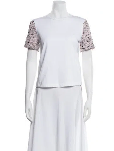 St. John T-Shirt White Patterned Short Sleeve with Crew Neck Fit: Tops by St. John typically fit true to size. | St. John Patterned Crew Neck T-Shirt w/ Tags in White, Women's S