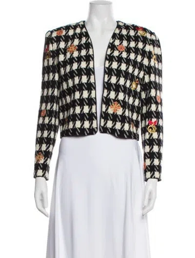 St. John Blazer Black Printed Embroidered Accent & Collarless Open Front Designer Fit: Jackets by St. John typically fit true to size. | St. John Printed Blazer in Black, Women's US 4 | S