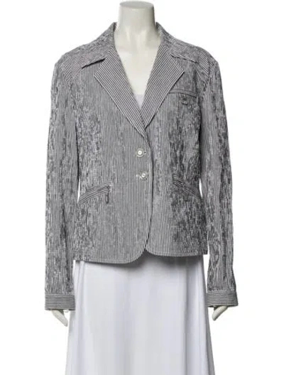 St. John Sport Blazer White Printed Pointed Collar Designer Fit: Jackets by St. John Sport are typically designed for a slim fit. | St. John Sport Printed Blazer in White, Women's L