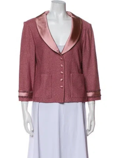 St. John Evening Evening Jacket Metallic & Pink Printed Beaded Accents & Shawl Collar Patch Pockets & Button Closure Fit: Jackets by St. John typically fit true to size. | St. John Evening Printed Evening Jacket in Metallic/Pink, Women's US 12 | XL