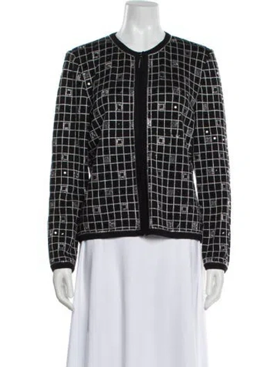 St. John Evening Evening Jacket Black Printed Crystal Embellishments & Collarless Zip Closure Fit: Jackets by St. John typically fit true to size. | St. John Evening Printed Evening Jacket in Black, Women's US 6 | M