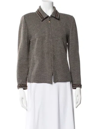 St. John Evening Jacket Printed Pointed Collar Zip Closure Designer Fit: Jackets by St. John typically fit true to size. | St. John Printed Evening Jacket, Women's US 10 | L