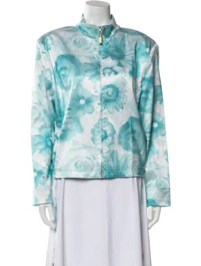 St. John Sport Jacket Blue Printed Stand Collar Front Pocket & Zip Closure Designer Fit: Jackets by St. John Sport are typically designed for a slim fit. | St. John Sport Printed Jacket in Blue, Women's L