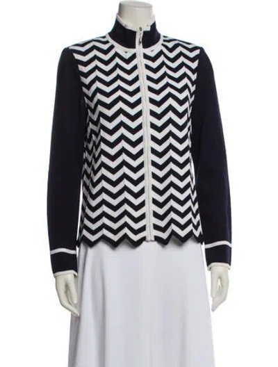 St. John Jacket Blue Printed Scalloped Accent & Stand Collar Zip Closure Designer Fit: Jackets by St. John typically fit true to size. | St. John Printed Jacket in Blue, Women's US 8 | M