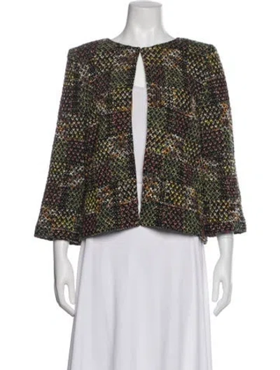 St. John Jacket Red Printed Collarless Hook and Eye Closure Designer Fit: Jackets by St. John typically fit true to size. | St. John Printed Jacket in Red, Women's US 10 | L
