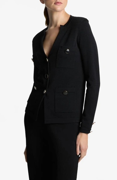 ST JOHN Santiago Knit Button Jacket In Black