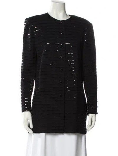 St. John Evening Evening Jacket Black Striped Collarless Button Closure Fit: Jackets by St. John typically fit true to size. | St. John Evening Striped Evening Jacket in Black, Women's US 12 | XL