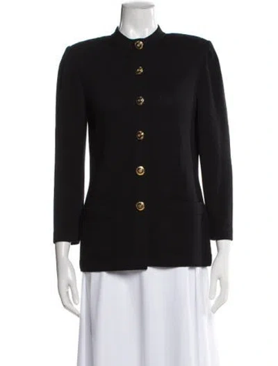 St. John Cardigan Grey Three-Quarter Sleeve with Collar Button Closure at Front Designer Fit: Sweaters by St. John typically fit true to size. | St. John Sweater in Grey, Women's Petite