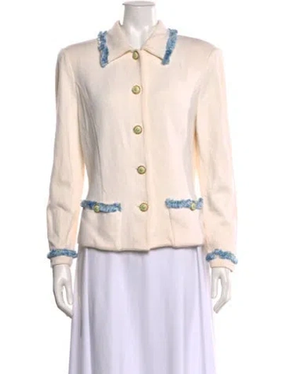 St. John Collection Cardigan Neutrals Fringe Trim Accent Long Sleeve with Collar Button Closure at Front Fit: Knitwear by St. John Collection typically fit true to size. | St. John Collection Sweater in Neutrals, Women's US 12 | XL