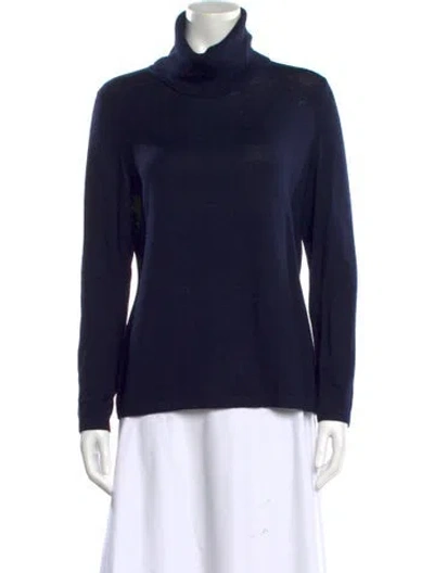 St. John Collection Turtleneck Blue Long Sleeve with Turtleneck Concealed Zip Closure at Back Fit: Knitwear by St. John Collection typically fit true to size. | St. John Collection Turtleneck Sweater in Blue, Women's S