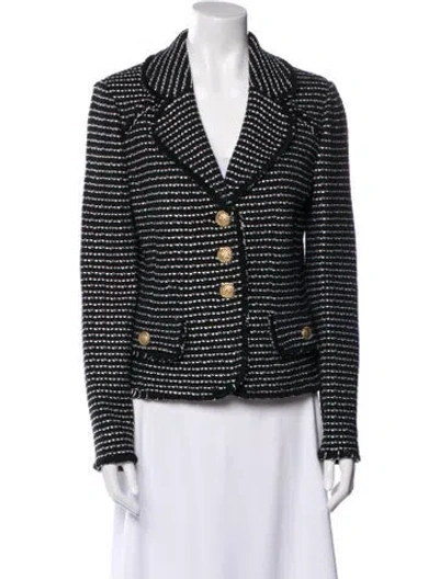 St. John Blazer Black Tweed Pattern Pointed Collar Flap Pockets & Button Closure Designer Fit: Jackets by St. John typically fit true to size. | St. John Tweed Pattern Blazer in Black, Women's US 8 | M
