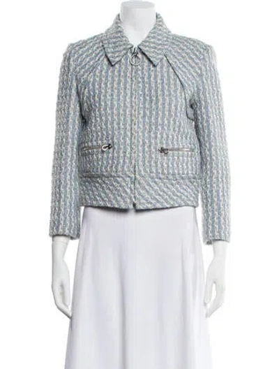 St. John Blazer Blue & Metallic Tweed Pattern Pointed Collar Zip Closure Designer Fit: Jackets by St. John typically fit true to size. | St. John Tweed Pattern Blazer w/ Tags in Blue/Metallic, Women's US 2 | XS