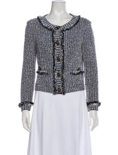St. John Evening Jacket Black Tweed Pattern Raw-Edge Trim & Collarless Button Closure Designer Fit: Jackets by St. John typically fit true to size. | St. John Tweed Pattern Evening Jacket in Black, Women's US 4 | S