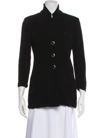St. John Wool Blazer Black Stand Collar Patch Pockets & Button Closure Designer Fit: Jackets by St. John typically fit true to size. | St. John Wool Blazer in Black, Women's US 10 | L