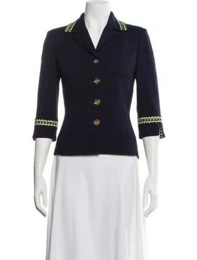 St. John Collection Wool Blazer Blue Pointed Collar Button Closure Fit: Jackets by St. John typically fit true to size. | St. John Collection Wool Blazer in Blue, Women's US 2 | XS