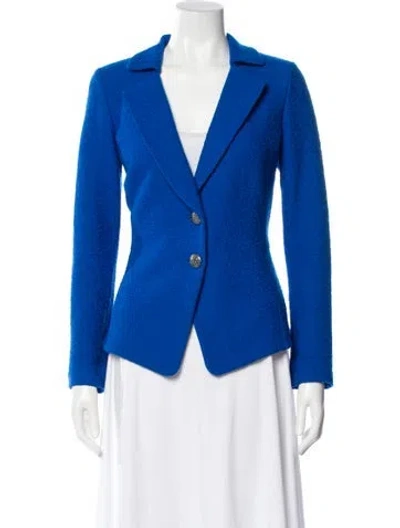 St. John Wool Blazer Black & Blue Pointed Collar Button Closure Designer Fit: Jackets by St. John typically fit true to size. | St. John Wool Blazer in Black/Blue, Women's US 4 | S