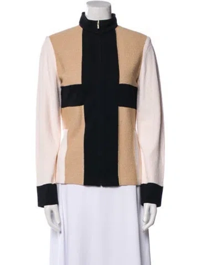St. John Collection Wool Jacket Neutrals Colorblock Pattern Stand Collar Zip Closure Fit: Jackets by St. John typically fit true to size. | St. John Collection Wool Colorblock Pattern Jacket in Neutrals, Women's US 4 | S