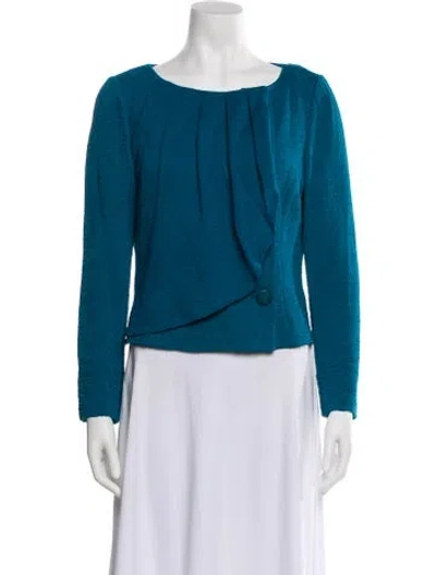 St. John Wool Evening Jacket Blue Pleated Accents & Collarless Front Pocket & Button Closure Designer Fit: Jackets by St. John typically fit true to size. | St. John Wool Evening Jacket in Blue, Women's US 6 | M