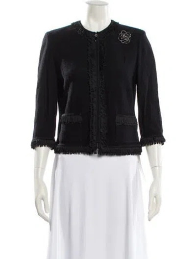 St. John Wool Evening Jacket Blue Fringe Trim Accent & Collarless Slit Pockets & Zip Closure Designer Fit: Jackets by St. John typically fit true to size. | St. John Wool Evening Jacket in Blue, Women's US 4 | S